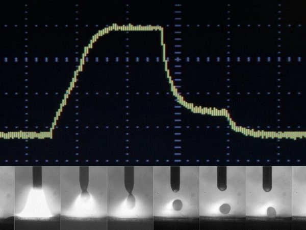 Στην περίπτωση συγκόλλησης με παλμικό τόξο, το υλικό ή η μεταφορά σταγονιδίων είναι απαλλαγμένα από βραχυκυκλώματα, ελέγχονται με διαμορφωμένο παλμό ρεύματος. Εδώ δημιουργείται το λεγόμενο φαινόμενο "σταγόνα" (Lorenzforce). Επομένως, με κάθε τρέχον παλμό, ένα σταγονίδιο χωρίζεται από το σύρμα, χωρίς να αγγίζει ή να βραχυκυκλώνει με το τεμάχιο εργασίας.
